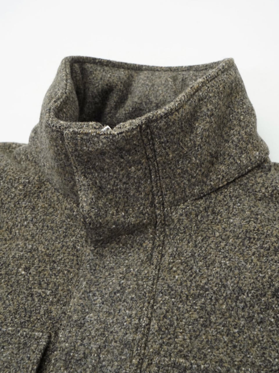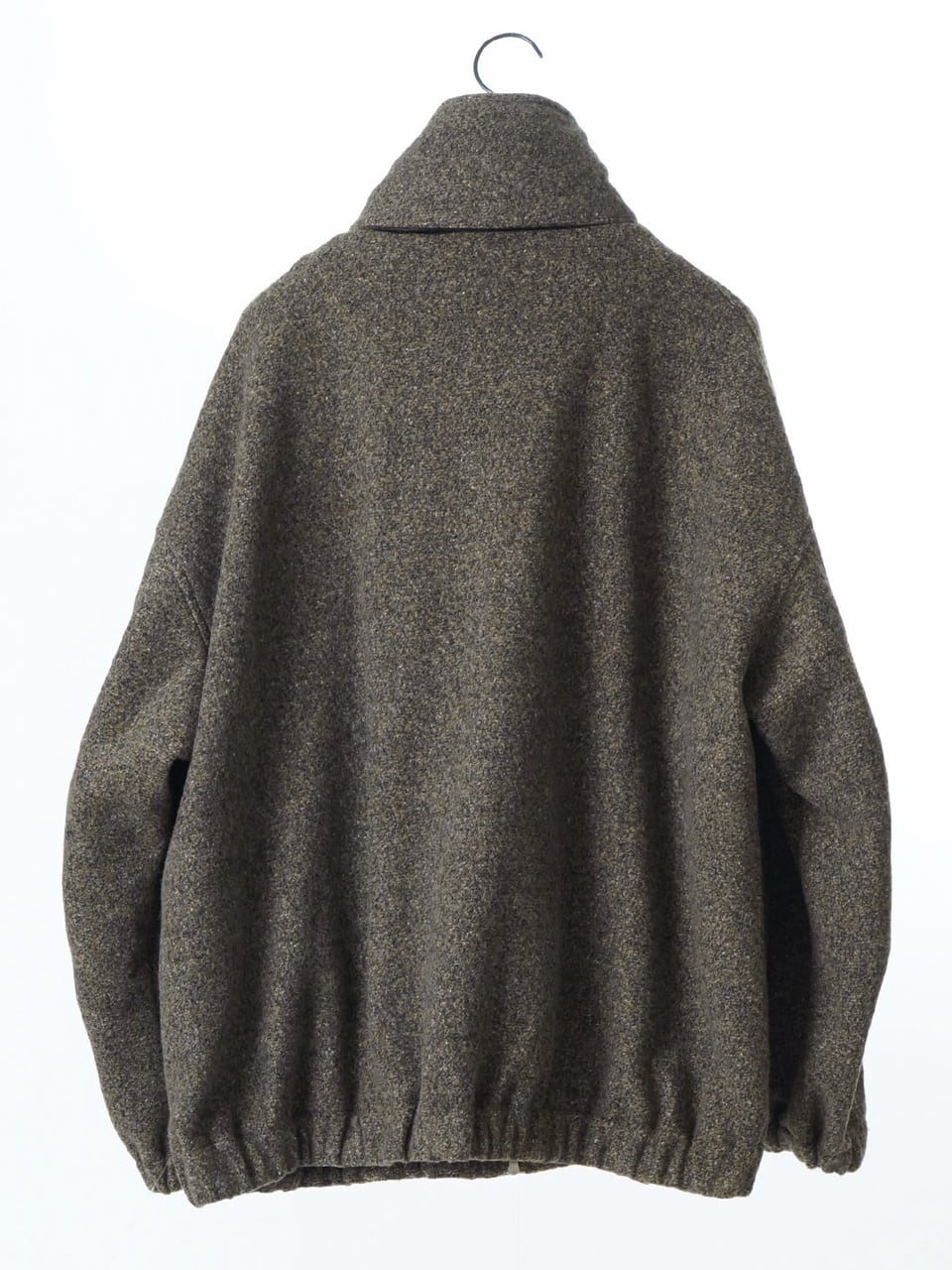 フォーマルな場にも映える霜降りウールを使用し、伝統的なドレス素材とミリタリーテイストの意外な組み合わせによる新鮮な魅力を創出しています。
