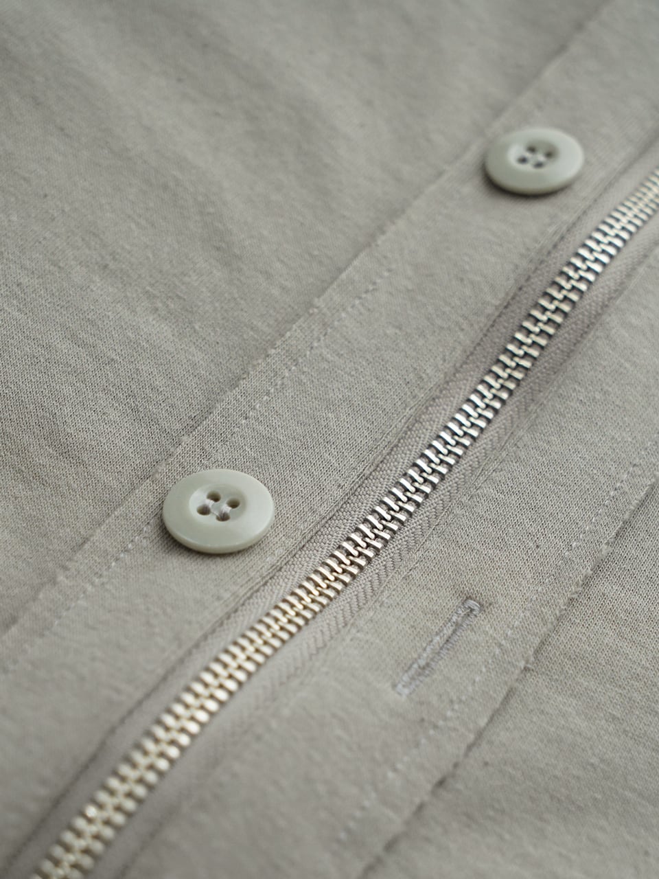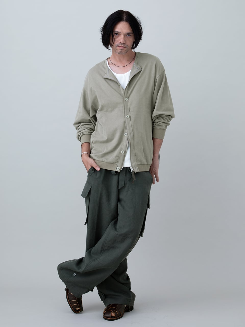 ミリタリーライナーのディテールからインスピレーションを得た、スウェットのような快適さを併せ持つカーディガンです。