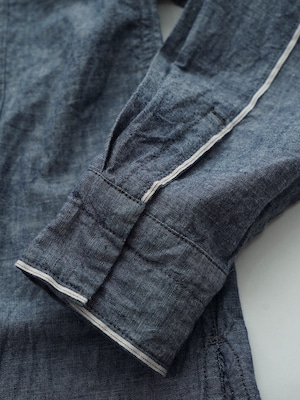 ミリタリーのオフィサーシャツをベースに、赤ミミのある素材を使用してワークシャツ風にミックスしたデザインです。