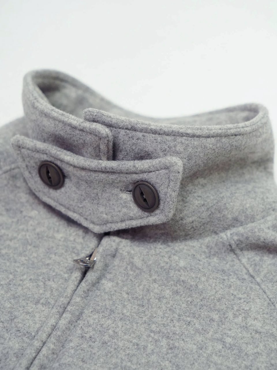古い時代のウールスポーツジャケットをサンプリングしたデザイン、チンストラップを使用してスタンドカラーとしても着用出来ます。